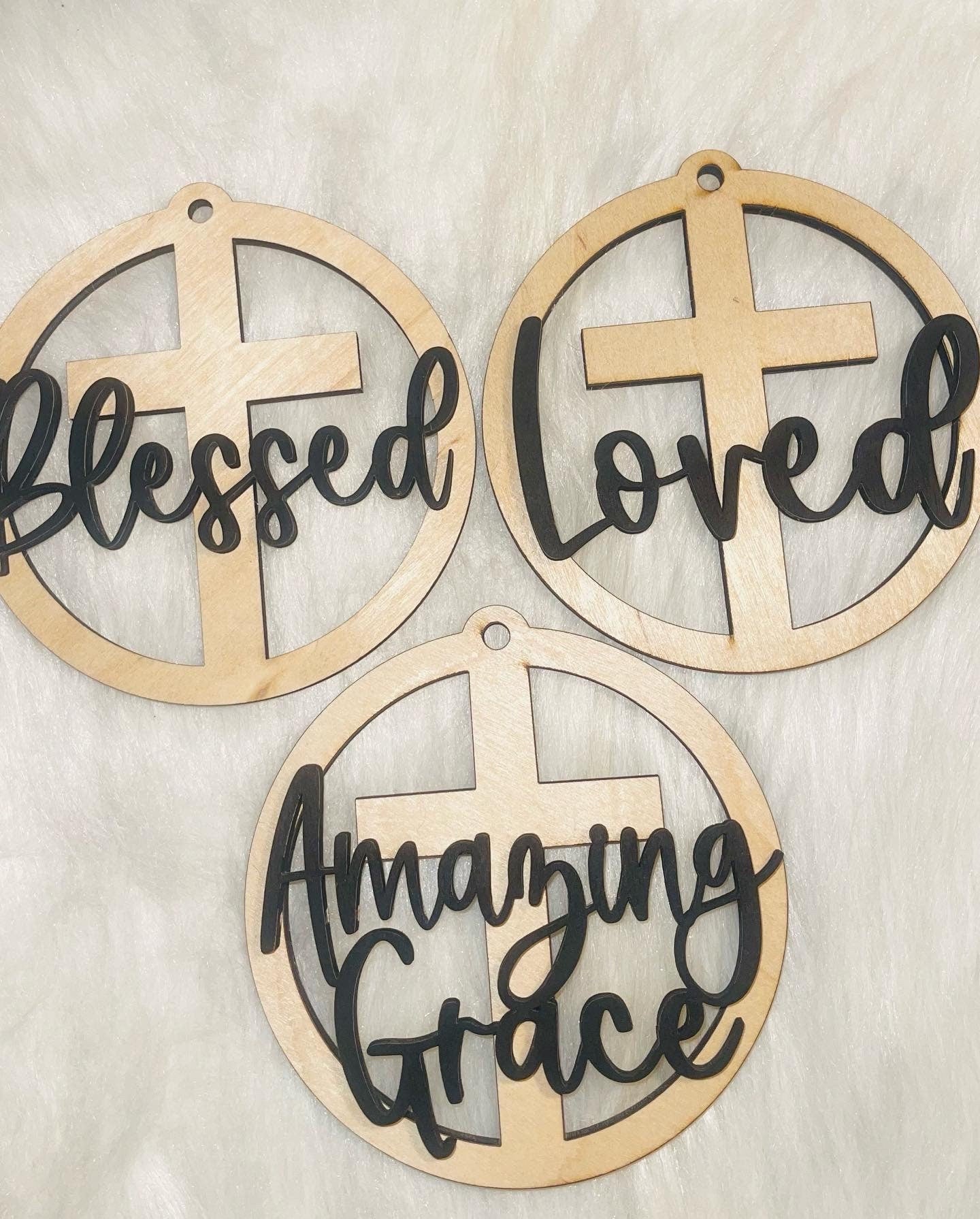 Cross Car Charm to hang on your rear view mirror or ornament.