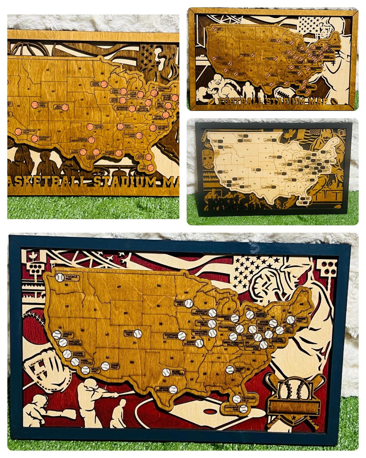 Personalized Baseball Stadium Travel Map: Sports Gift for Dad